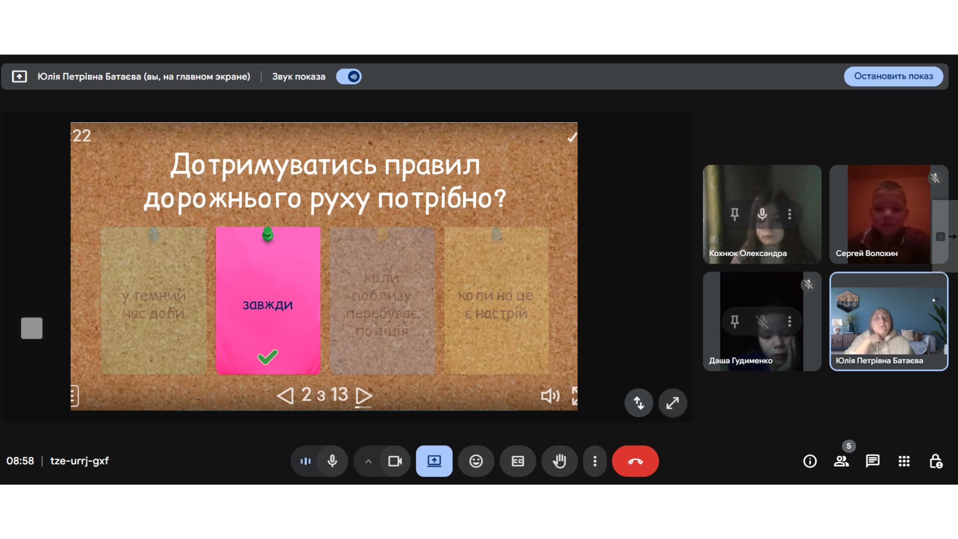 З 10 по 14 лиситопада в школі проходить Тиждень безпеки дорожнього руху, метою якого є залучення дітей до вивчення та дотримання Правил дорожнього руху, безпечної поведінки на вулицях , дорогах, у транспорті. Представляємо фото-челлендж “Дорожні знаки для дітей”. А також класні керівники провели різні заходи, інструктажі, ігри на знання правил дорожнього руху.