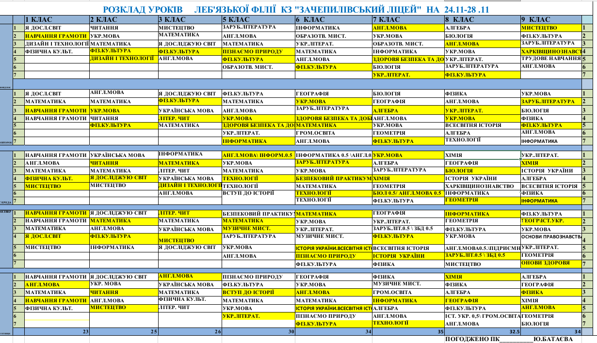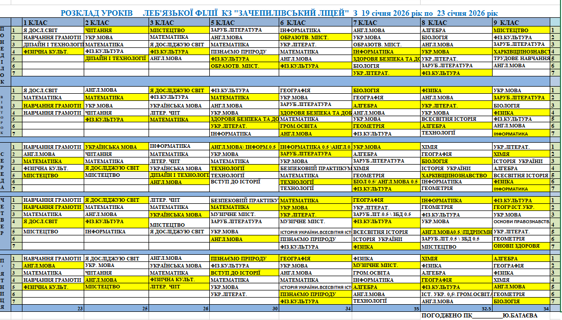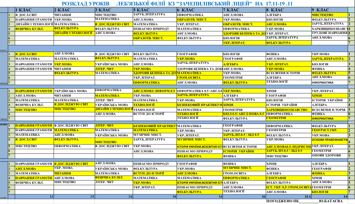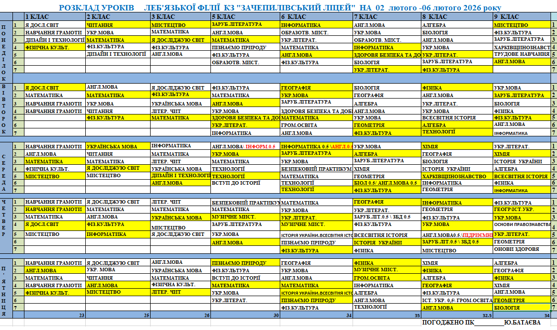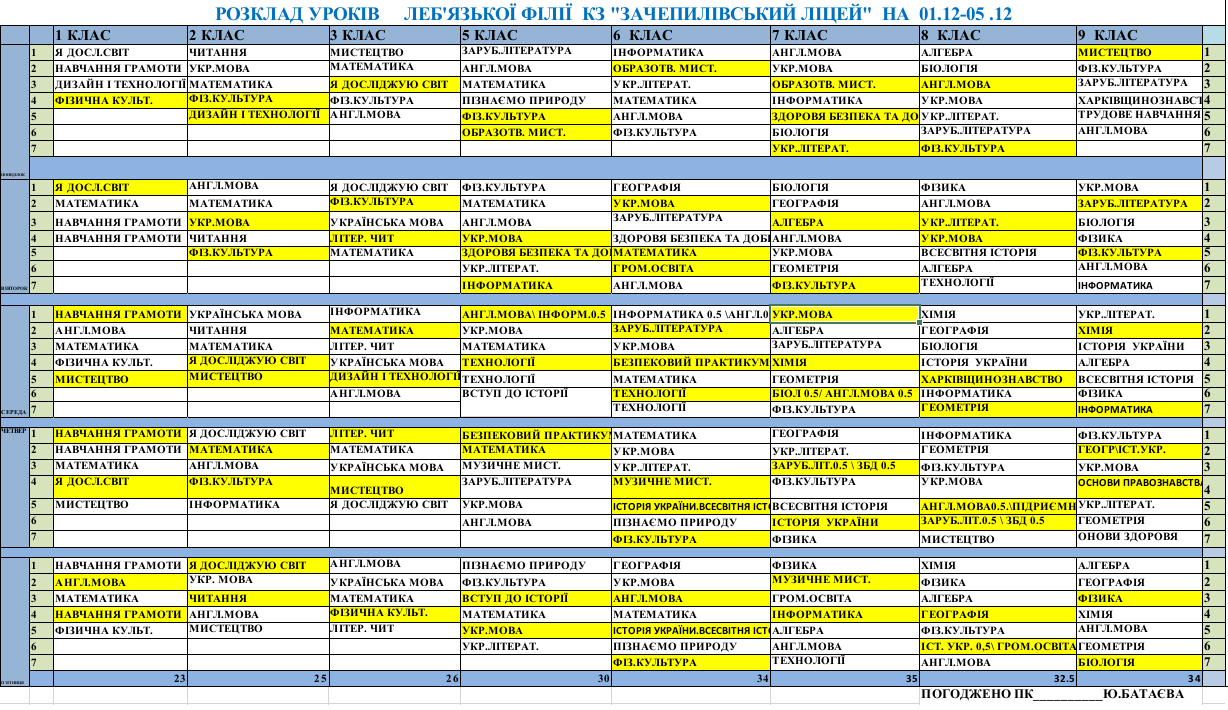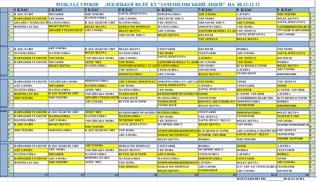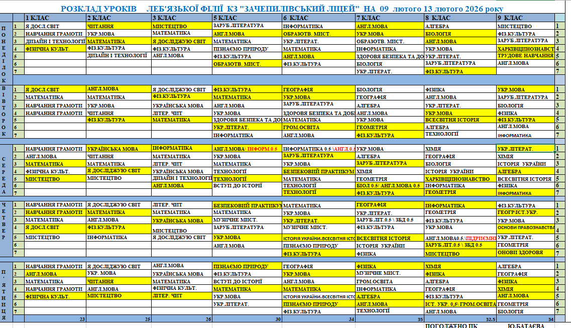 Розклад синхронних/асинхронних уроків